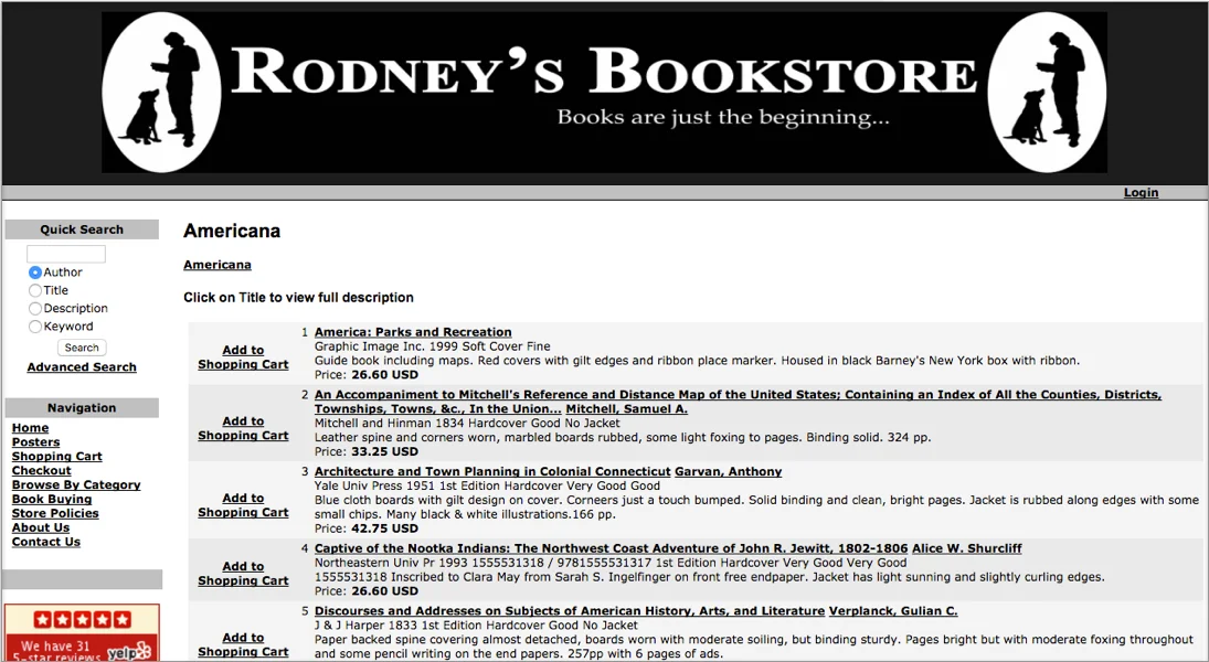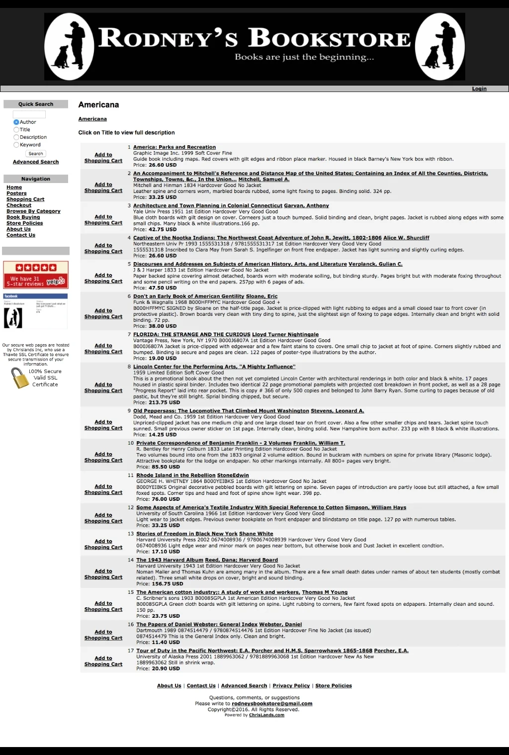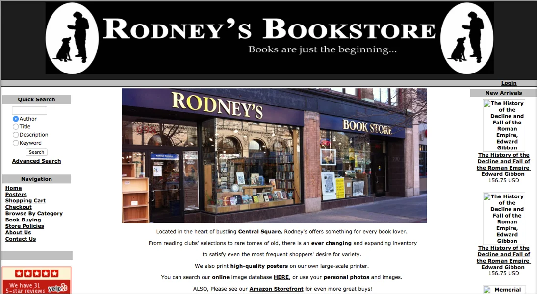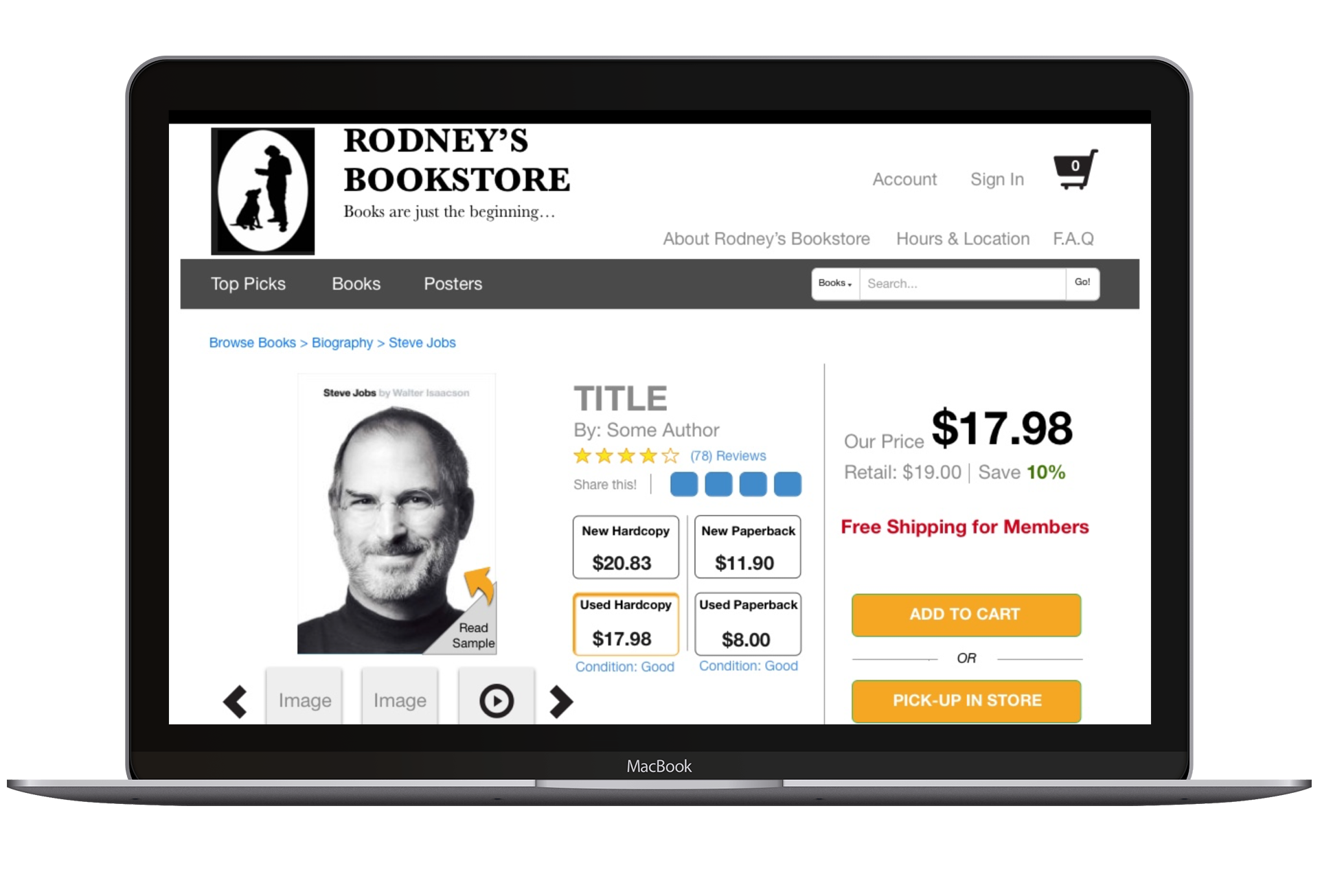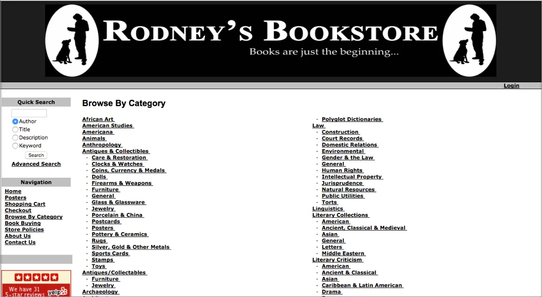 - Outdated Website: Rodney’s Bookstore’s website was created decades ago and has been maintained but not updated to today’s conventions, which are at the root of users’ challenges and frustrations when using the current site.